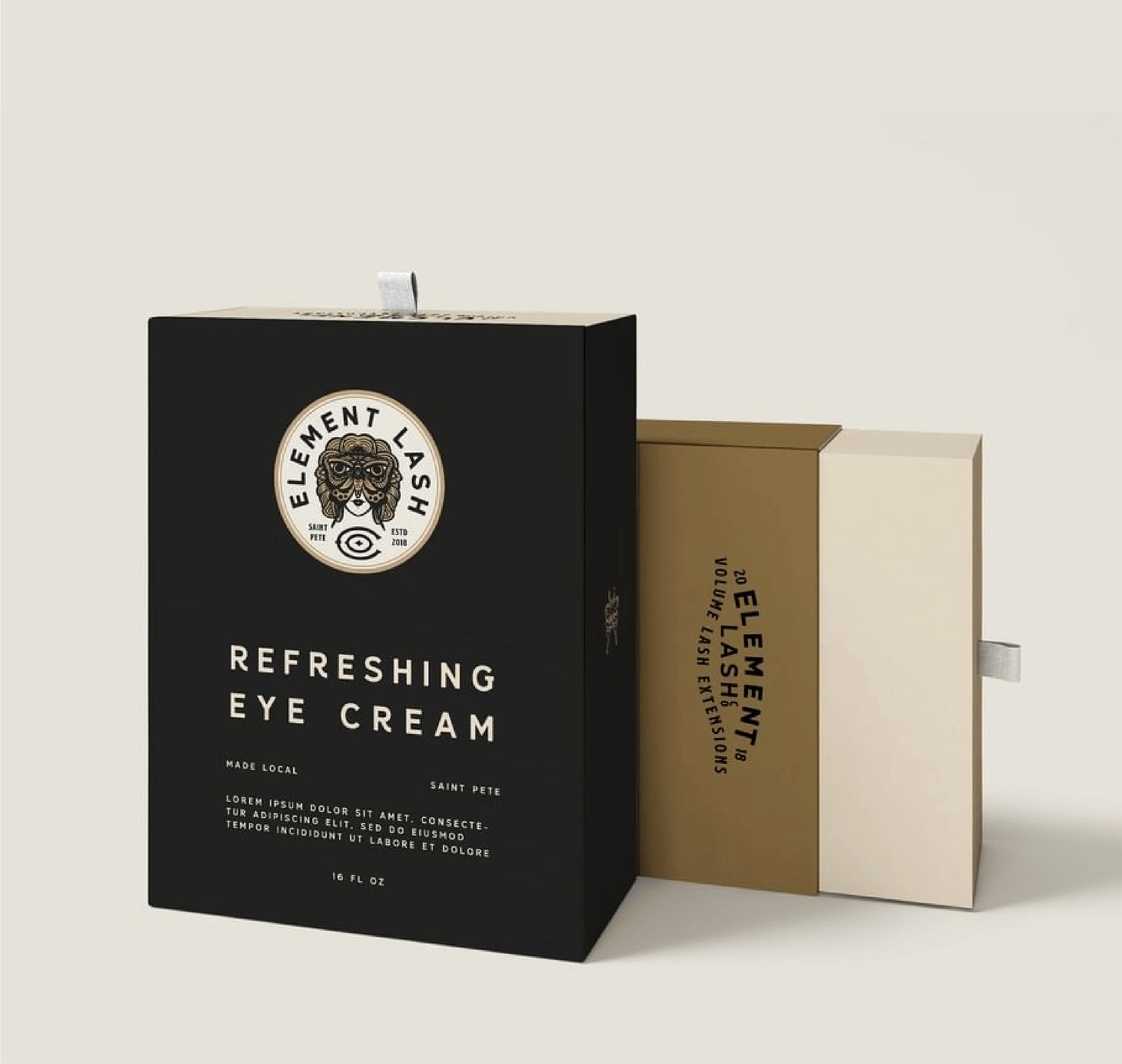 Along with creating a brand identity for Element Lash Co., our team at Wax&Hive was also lucky enough to help design some merchandise and packaging. Josh Rinard lead the design of the packaging for Element Lash Co., creating a beautiful design that helps showcase the brands unique logos, colors and typography.